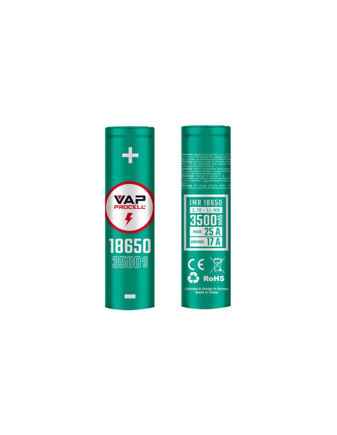 Η Vap Procell IMR 18650 25A είναι επαναφορτιζόμενη μπαταρία λιθίου, κατασκευασμένη αποκλειστικά για ατμιστικές συσκευές, με χωρητικότητα 3500mAh και υψηλή απόδοση. Ιδανική για σταθερή ισχύ, ασφάλεια και μεγάλη διάρκεια χρήσης σε κάθε τζούρα.